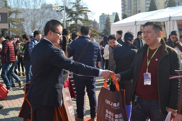 主動出擊,是奇力人深信不疑的準則。縱然展廳內已然人山人海,但奇力干將攜多位禮儀佳麗,不畏寒風,主動出擊,分發手提袋和各種宣傳資料。提前傳播奇力參展相關信息。