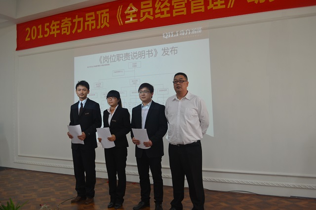 4月2日,繼3月奇力多次大幅對外展示大動作和決心之后,終于迎來奇力內部大變革的伊始。“2015年奇力吊頂‘全員經營管理’動員大會”于8時10分正式拉開帷幕。