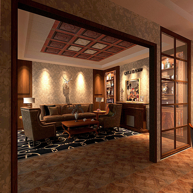 二觀內涵:隱約看見的展館內的時間照片墻2009.2011.2012……2015,從1999奇力創建伊始,帶領諸君感受奇力的15年沉淀的文化氣息。步入展館優雅靜謐的感覺撲面而來,柔和的燈光,咖啡色的美式布置,充分體現了奇力吊頂崇尚的美式風尚。