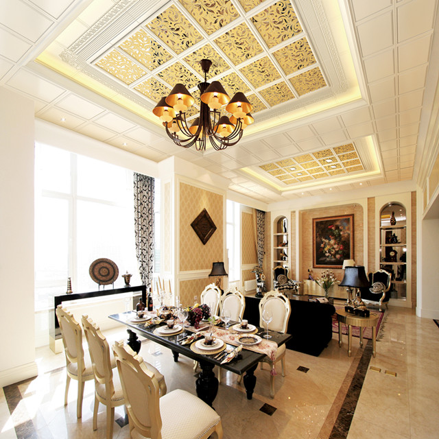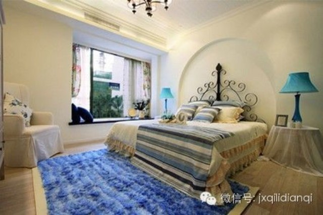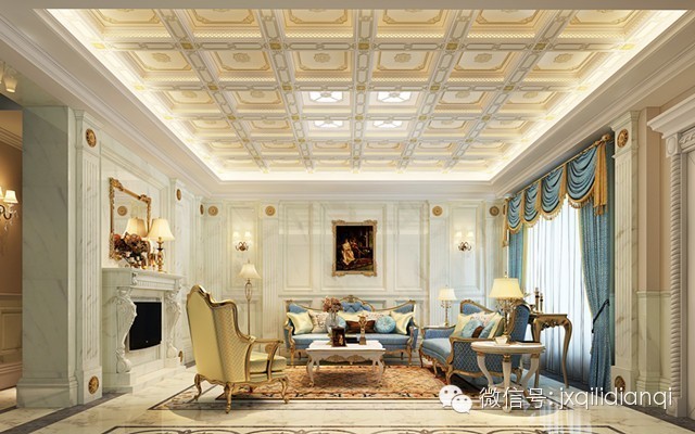 美式古典風格在空間上追求連續(xù)性,追求形體的變化和層次感。這個房間以美式古典宮廷風格為主,以復古的白色和金色為基調。室內外高貴典雅,光影變化豐富。為體現(xiàn)宮廷風格,家具、門,窗都漆成白色,藍色的布藝沙發(fā),金色的畫框壁畫,金色系的地毯,帶有一種異域的視覺沖擊。用壁爐的造型打造的電視柜使得一家人看電視時的感覺更為溫馨。
