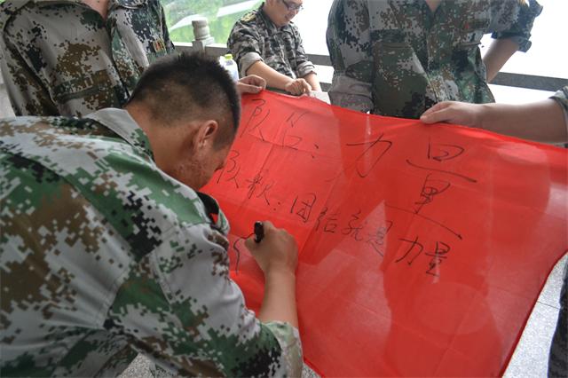 7月16日早上7點,所有人員整裝待發(fā)去杭州臨安的訓(xùn)練基地。上午九點整所有人到達目的地,換上了英姿颯爽的迷彩服排好隊伍。