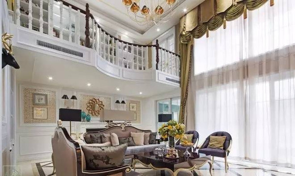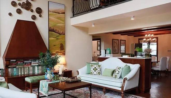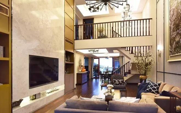 ③除此之外,挑空型客廳里的裝飾和配飾也是非常重要的一點(diǎn)了,可以嘗試在墻壁上掛上符合整體風(fēng)格的掛畫,或者是根據(jù)設(shè)計(jì)師的建議安裝幾盞造型獨(dú)特的壁燈,這些裝飾一烘托,整個(gè)客廳就更加大氣了。