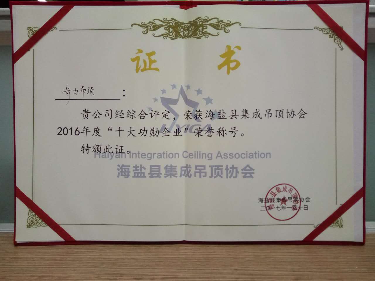 2016年1月10日,2016年海鹽集成吊頂協會年會暨年終會員表彰大會在海鹽海利開元酒店舉行。奇力電器有限公司應邀參加。