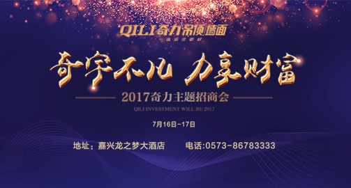 2017奇力主題招商會將在浙江嘉興盛大召開!“奇宇不凡 力享財富”,奇力將為想要在全屋定制集成吊頂行業大展拳腳的經銷商們提供一個前所未有的全屋吊頂盛世!